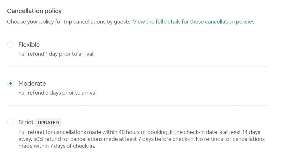 And finally, a strict policy will only give you a full refund within 2 days of booking. You’ll receive a refund on half your money if you cancel within 7 days and no refund thereafter.