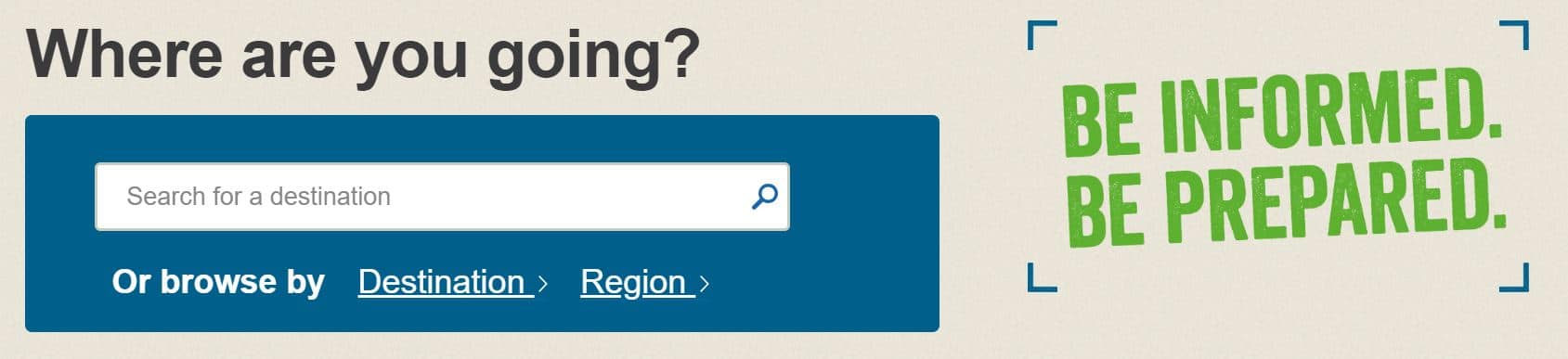 There are three main advisory websites that I recommend. The first is the Australian SmartTraveller tool. Just enter in the country you are visiting and it will bring up a colour coded cautionary advice.